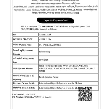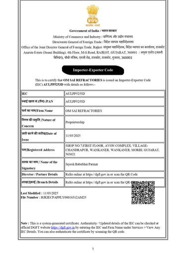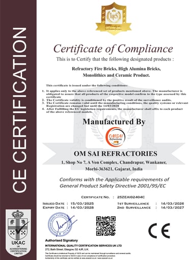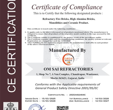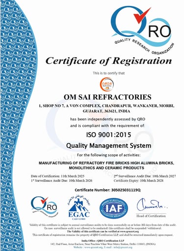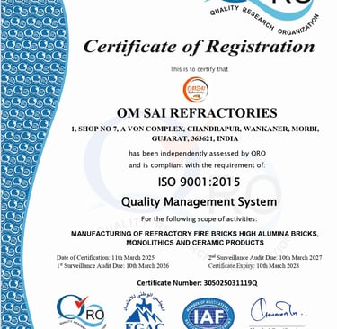 OM SAI REFRACTORIES is a trusted manufacturer and supplier of high-quality refractory materials, delivering reliable solutions for high-temperature industrial requirements. With a strong commitment to durability, performance, and customer satisfaction, we provide a complete range of refractory products including fire bricks, high alumina bricks, insulation bricks, castables, mortars, ceramic fiber products, and customized refractory shapes.